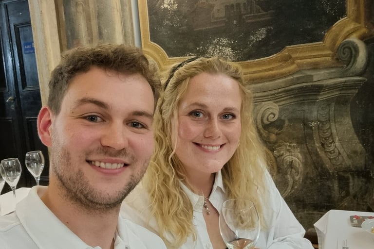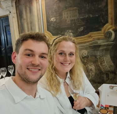 Brylluppet afholdes lørdag d. 10. oktober 2026. Vi starter med vielse i Hellebæk kirke med efterfølgende reception i Ålsgårde brohus og endelig middag og fest på hotel Bretagne.